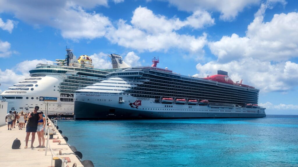 While docked in Cozumel, we spotted Virgin Voyages’ Valiant Lady — and wow, what a stunner. Sleek, modern, and adults-only.