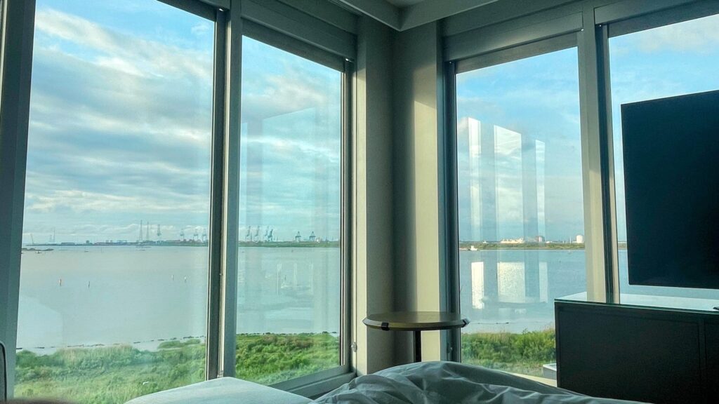 We stayed overnight at the Hyatt Regency Baytown–Houston, using one of my Hyatt Free Reward Nights from the credit card. The next morning, the view of the bay was beautiful — but what really caught our attention was the energy downstairs.