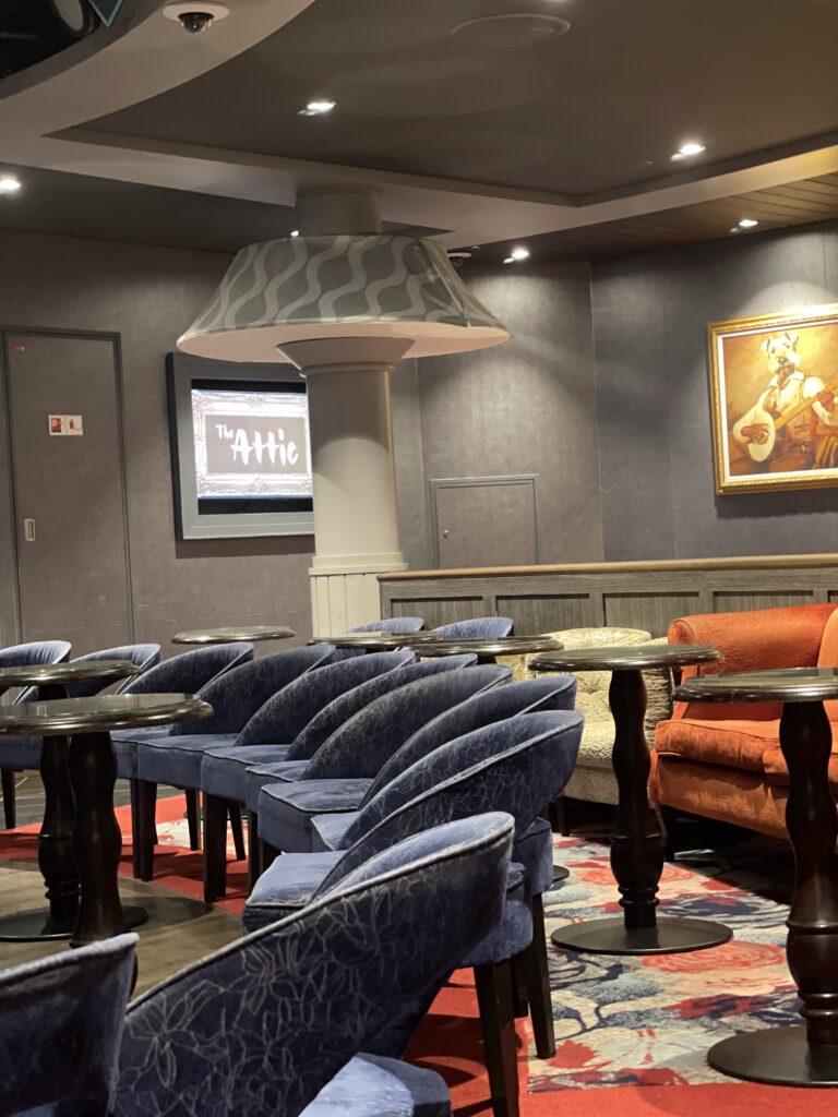 Since our suite lounge days are behind us for this sailing, we headed to The Attic to relax away from the hustle and bustle of the Windjammer. With lunch reservations at 12:30, it was the perfect quiet spot to wait away from the hustle and bustle of the Windjammer Cafe – which can get a little crazy on Embarkation day.