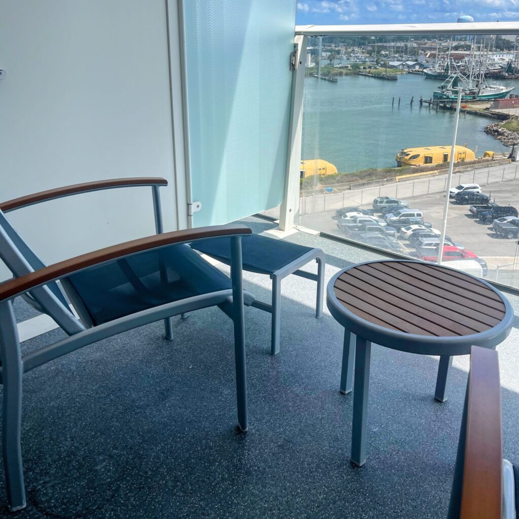 We upgraded to a Large Balcony stateroom for $30 total, and it turned out to be an excellent decision. The balcony was noticeably more spacious, and my favorite detail was the higher railing. Normally, when I sit in the lounge chair, the railing cuts off the horizon view—but not this time. From this balcony, I had an unobstructed view of the ocean, which made the upgrade absolutely worth it. Short-girl approved!