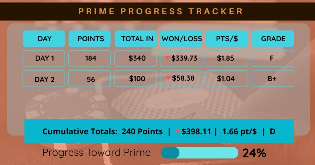 We spent a couple of hours in the Casino Royale, continuing our quest for points toward Prime renewal.