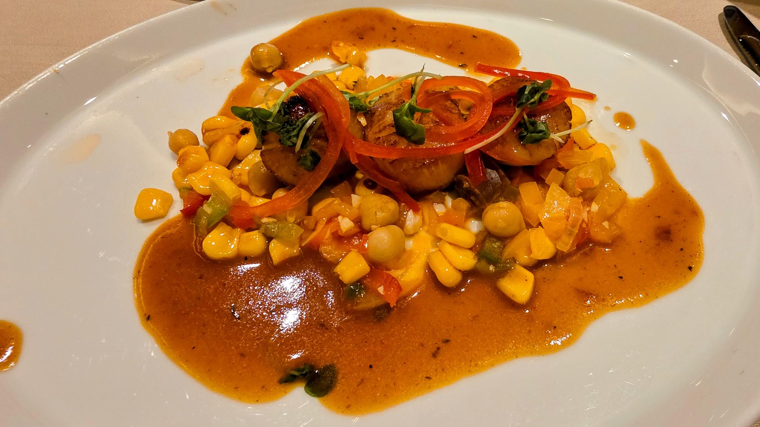 - Appetizers: Rob’s scallops were rubbery, and some of the guests seated near us even received undercooked ones.