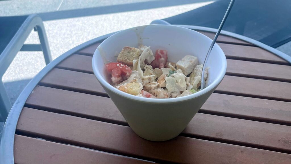 I ordered the chicken Caesar salad, and it was fantastic — perfectly seasoned chicken, crisp lettuce, and just the right amount of dressing. Honestly, it ended up being one of the best lunches of the entire cruise.