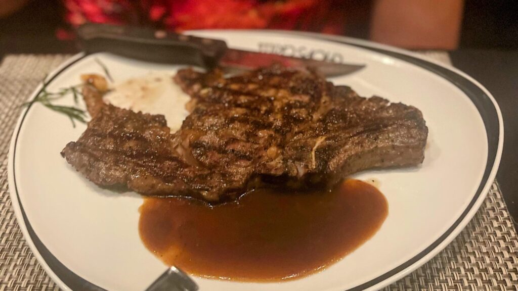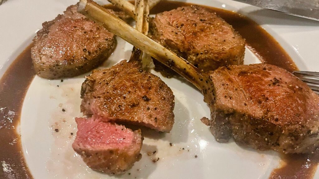 - Mains: I ordered the lamb chops — and they were absolutely superb, tender and full of flavor. He went with the ribeye, and since he cleaned his plate, I’m assuming it hit the mark too.